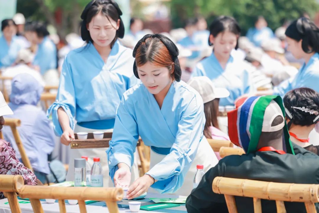 人潮涌動,梵音陣陣,走進茶圣故里園,仿佛穿越千年茶香的時光隧道,茶文化氛圍撲面而來,身著茶服的茶人三兩成群,引導來賓沐手、簽到和領取茶帖。