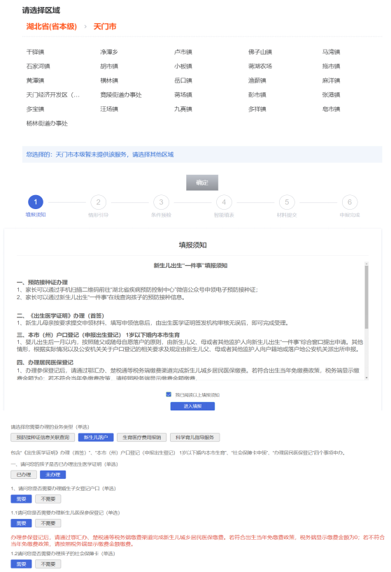 仔細閱讀后勾選“我已閱”,點擊“進入填報”按鈕進入“智能導引”頁面,按照實際需求選擇組合辦理場景。