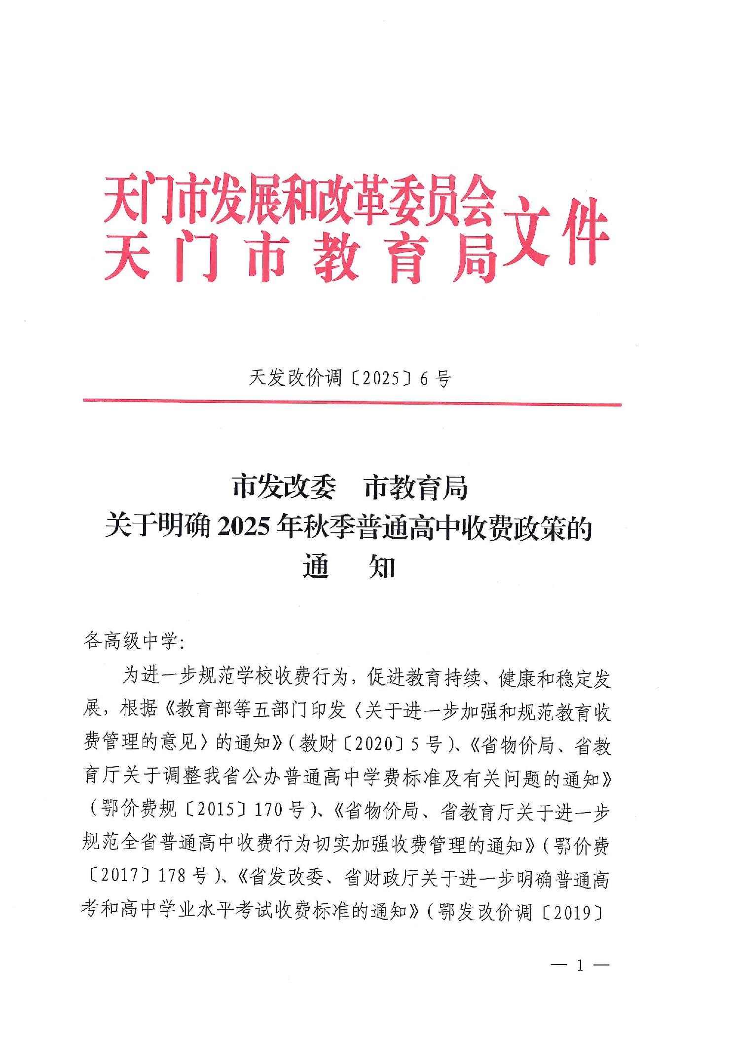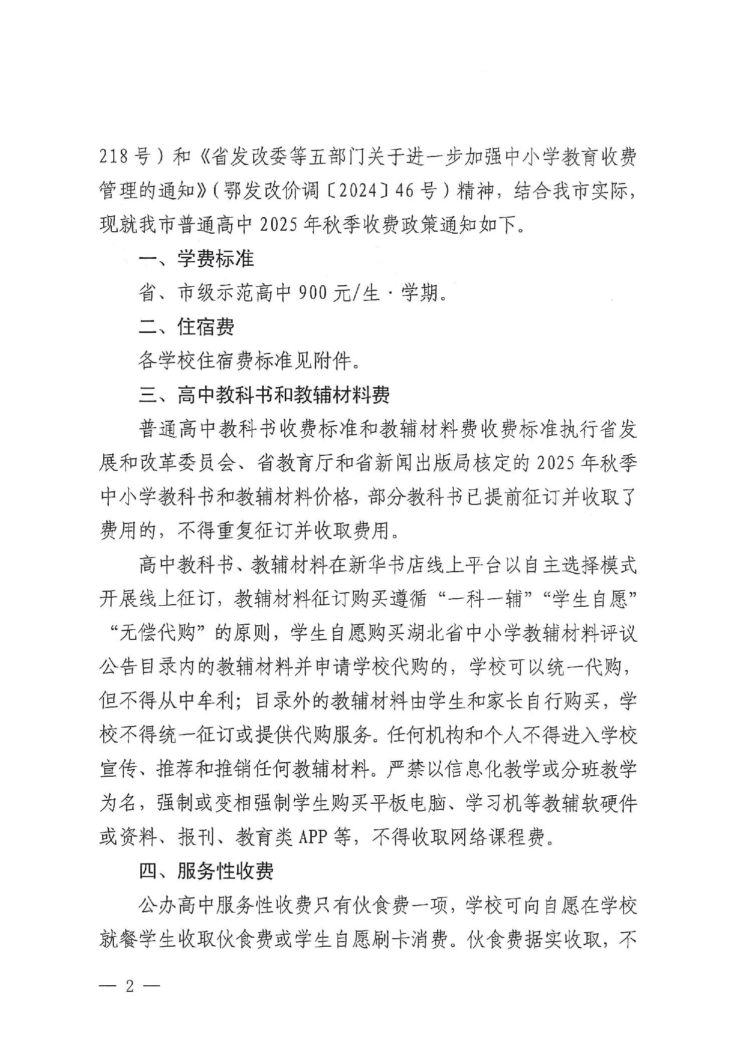 關(guān)于明確2025年秋季普通高中收費政策的通知