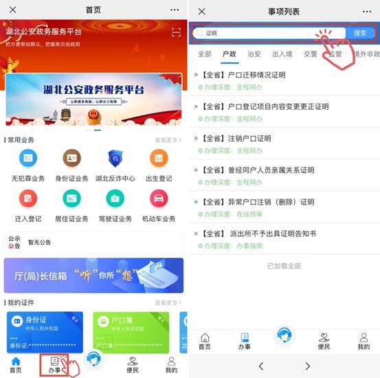 湖北公安政務(wù)服務(wù)平臺(tái)生成證明文件,申請人自行下載打印。