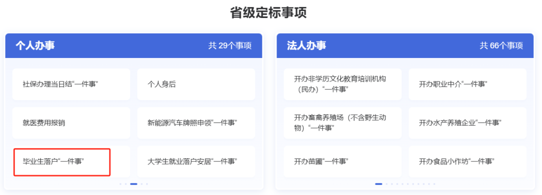 (2)點擊畢業生落戶“一件事”,主題后方有辦事解讀和立即辦理按鈕,點擊“立即辦理”按鈕進入申辦頁面。