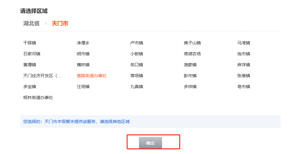按照實際辦理需求勾選辦事地點,點擊確認按鈕進入“申報須知頁面”
