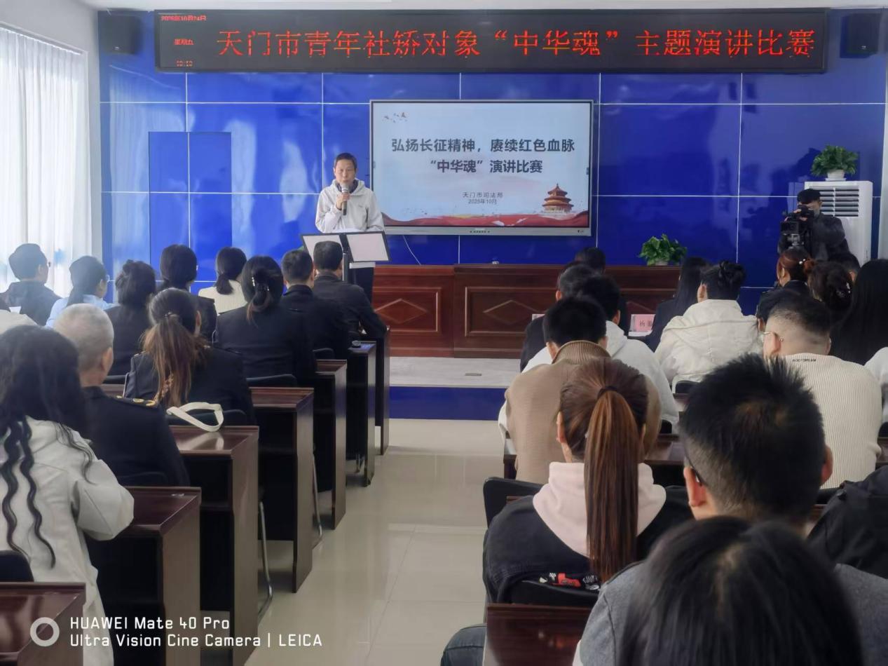 ??10月24日下午,天門市社區矯正管理局成功舉辦以“弘揚長征精神、賡續紅色血脈”為主題的“中華魂”演講比賽。此次活動旨在通過紅色文化教育,引導全市青年社區矯正對象增強社會責任感與認同感,樹立社會主義核心價值觀,助力其順利回歸社會。