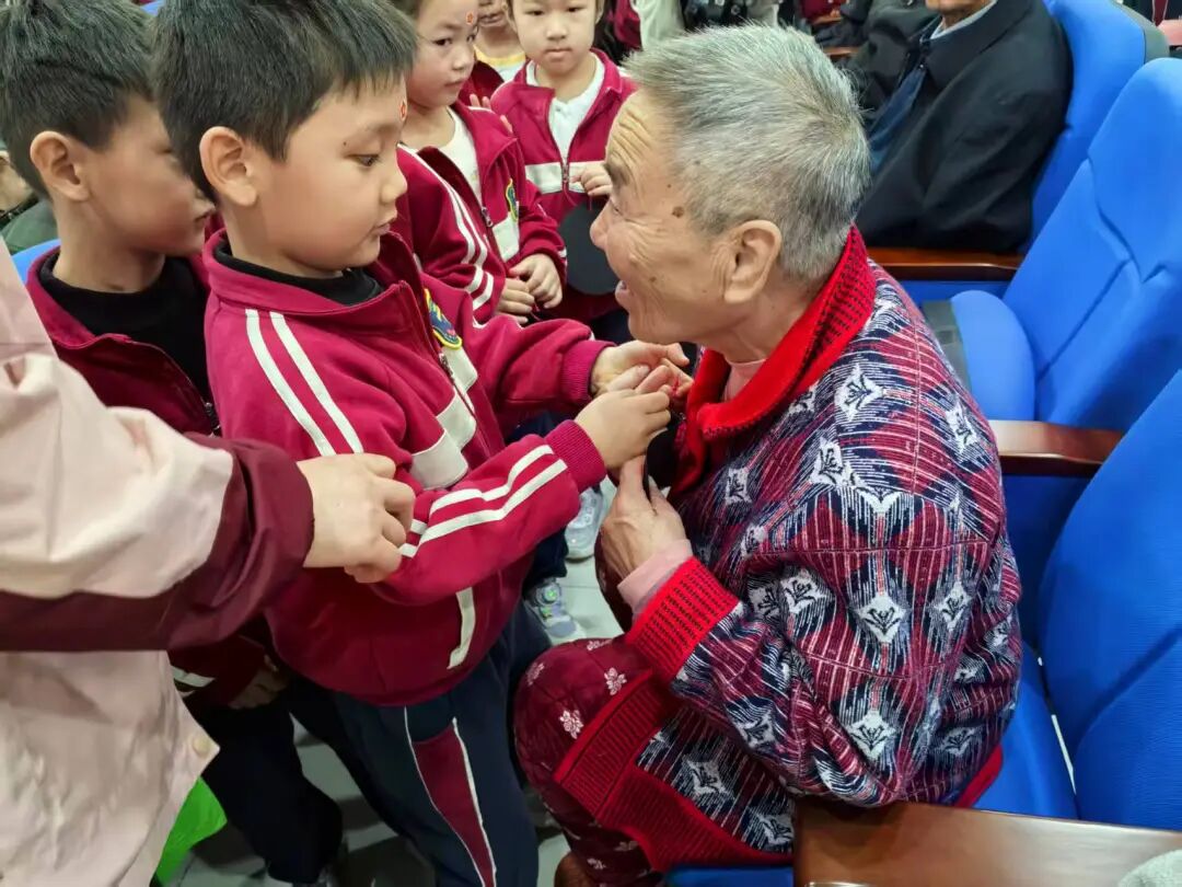 活動在老年大學花鼓戲表演隊激昂澎湃的《大海航行靠舵手》中拉開帷幕,熟悉的旋律瞬間喚醒了老兵的紅色記憶。隨后,韻味悠長的湖北民歌《龍船調》、地道醇厚的花鼓戲《巡案審母》選段、鏗鏘有力的紅歌《紅燈記》再度點燃現場熱血,東方幼兒園孩子們更帶來感人至深的手語舞《中華孝道》《孝心到永遠》,以稚嫩動作傳遞尊老敬老之心,還將親手制作的禮物送到每位老兵手中,場面溫馨。此外,歌曲、碟子舞、戲曲連唱等豐富多彩的節目接連上演,共同為光榮院的老兵們獻上了一場飽含敬意的文化盛宴。