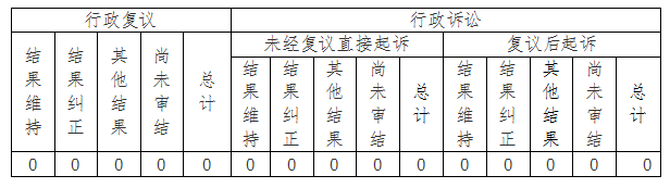 全年沒有因政府信息公開申請(qǐng)行政復(fù)議、提起行政訴訟的案件。