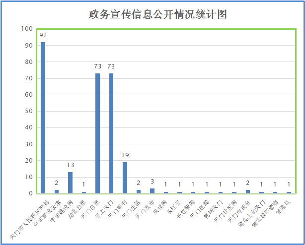1.政務(wù)宣傳信息公開情況。2019年1月至12月,我局累計(jì)公開各類政務(wù)宣傳信息289篇。其中,在“天門市人民政府網(wǎng)站”主動公開政府信息92篇(具體為:機(jī)構(gòu)職能1篇、領(lǐng)導(dǎo)信息1篇、內(nèi)設(shè)機(jī)構(gòu)1篇、下屬單位1篇、政府信息公開目錄1篇、政府信息公開指南1篇、政府信息公開年報1篇、政務(wù)動態(tài)66篇、規(guī)劃總結(jié)2篇、財(cái)政預(yù)決算2篇、公文1篇、業(yè)務(wù)工作14篇);在“云上天門”政務(wù)新媒體平臺發(fā)布各類政務(wù)信息73篇,閱讀點(diǎn)擊量3186次;在“中華建設(shè)網(wǎng)”發(fā)表13篇,“中華建設(shè)”雜志發(fā)表2篇,“湖北城市管理”雜志發(fā)表1篇,“筆尖上的天門”雜志發(fā)表1篇,“竟陵風(fēng)”雜志發(fā)表1篇,“天門電視臺”發(fā)表2篇,“湖北日報”刊登1篇,“天門日報”刊登73篇,“天門周刊”刊登19篇,“央視網(wǎng)”刊登1篇,“長江云”刊登1篇,“長江新聞”刊登1篇,“天門生活”刊登2篇,“天門發(fā)布”刊登3篇、“天門在線”1篇、“視聽天門”1篇、“天門社區(qū)網(wǎng)”1篇。