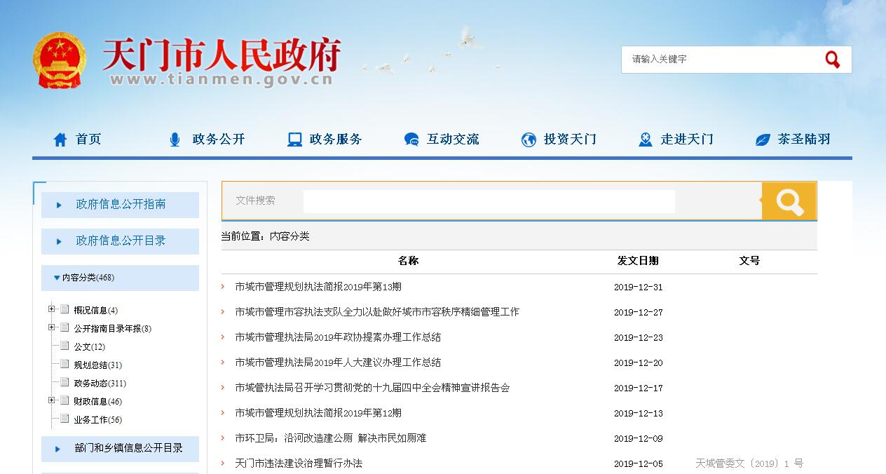 天門市城市管理執(zhí)法局2019年度政府信息公開工作年度報告