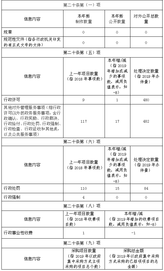 本年度報告根據(jù)《中華人民共和國政府信息公開條例》和《2019年天門市政務(wù)公開工作要點(diǎn)》等文件的規(guī)定和要求編制。全文包括總體情況、行政機(jī)關(guān)主動公開政府信息情況、行政機(jī)關(guān)收到和處理政府信息公開申請情況、因政府信息公開工作被申請行政復(fù)議及提起行政訴訟情況、政府信息公開工作存在的問題及改進(jìn)情況、其他需要報告的事項(xiàng)等六個方面。本報告中所列數(shù)據(jù)的統(tǒng)計(jì)期限自2019年1月1日起至2019年12月31日止。本年度報告的電子版可在天門市人民政府門戶網(wǎng)站(m.qinghailake.com.cn)下載。如對本報告有疑問,請與天門市城市管理執(zhí)法局政務(wù)公開工作領(lǐng)導(dǎo)小組辦公室聯(lián)系(地址:天門市紡織路73號;郵編:431700;聯(lián)系電話:0728-5235199;電子郵箱:tmcgj@163.com)。