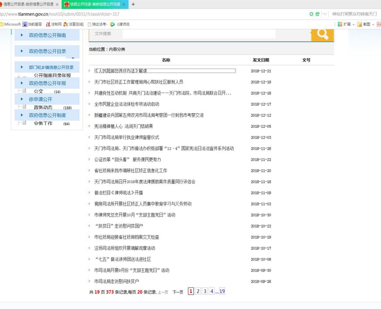 天門市司法局2018年政府信息公開工作年度報告