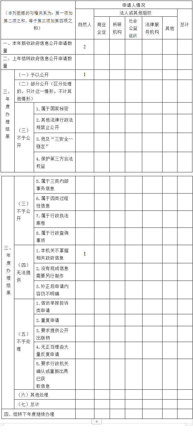 2020年共收到2件依申請公開事項,其中1件已在政府網站上進行公開,1件本部門不掌握相關信息,無法提供。