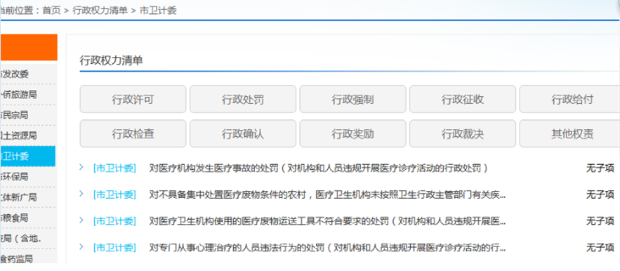 (一)公開行政權力清單。根據根據《省人民政府辦公廳關于印發2017年全省政務公開工作要點的通知》,將衛計委最新的行政權力事項、權力流程圖等梳理匯總后,在市政府門戶網站建設專欄進行了公開,并在2017年進行了資料補充和內容完善。