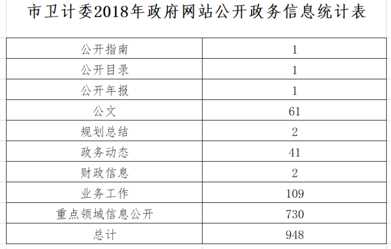2018年,本委在市政府網站主動公開信息948條,在《楚天聲屏報·天門周刊》公開信息220條,辦宣傳專欄12期。全文電子化率達100%。在主動公開的信息中,與公眾密切相關的信息如社區衛生服務、孕產婦保健、預防接種、傳染病疫情、疾病防治、家庭發展、計生指導、愛國衛生、流動人口、醫療服務、醫療收費標準、醫療機構、執業醫師管理、醫療事故處理、愛國衛生、醫學教育、辦事規程、衛生事業發展規劃等信息占信息總數的90%以上。為使政府信息公開工作更貼近公眾需求,本委通過網絡咨詢、電話咨詢和網上受理信息公開申請等渠道,了解掌握公眾的信息需求,對公眾關注度高,咨詢比較集中的信息,及時編制整理,在網上主動公開。