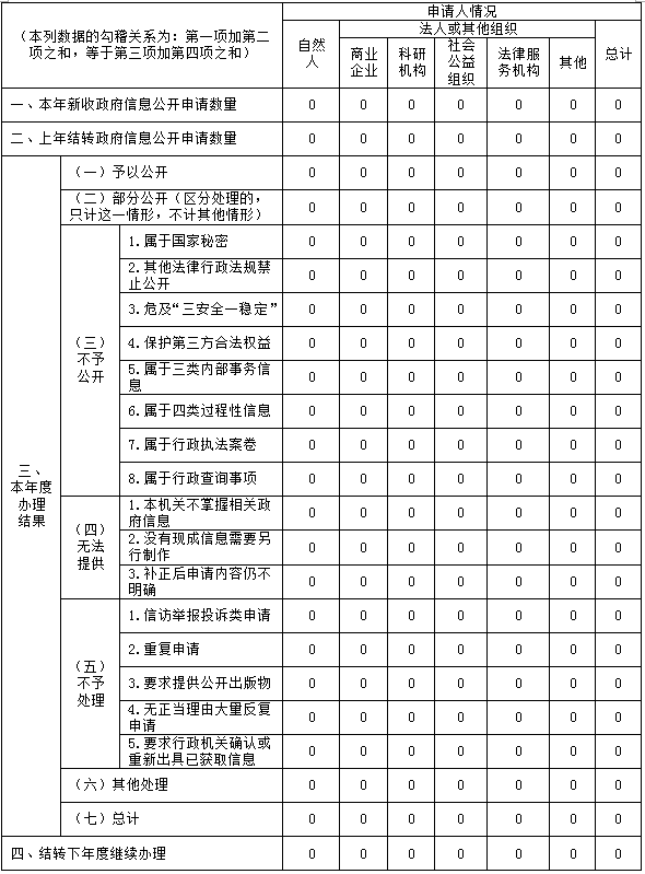 本年度報告根據《中華人民共和國政府信息公開條例》(以下簡稱《條例》)和《市人民政府辦公室關于做好政府信息依申請公開工作和2019年政府信息公開年度編制發布工作的通知》的規定和要求編制。本報告中所列數據的統計時間自2019年1月1日起至2019年12月31日止。本年度報告的電子版可在天門市人民政府網站(http://m.qinghailake.com.cn/)下載。如對本報告有疑問,請與天門市煙草專賣局辦公室聯系(聯系電話:0728-5343136)。現將我局信息公開工作年度報告如下:
