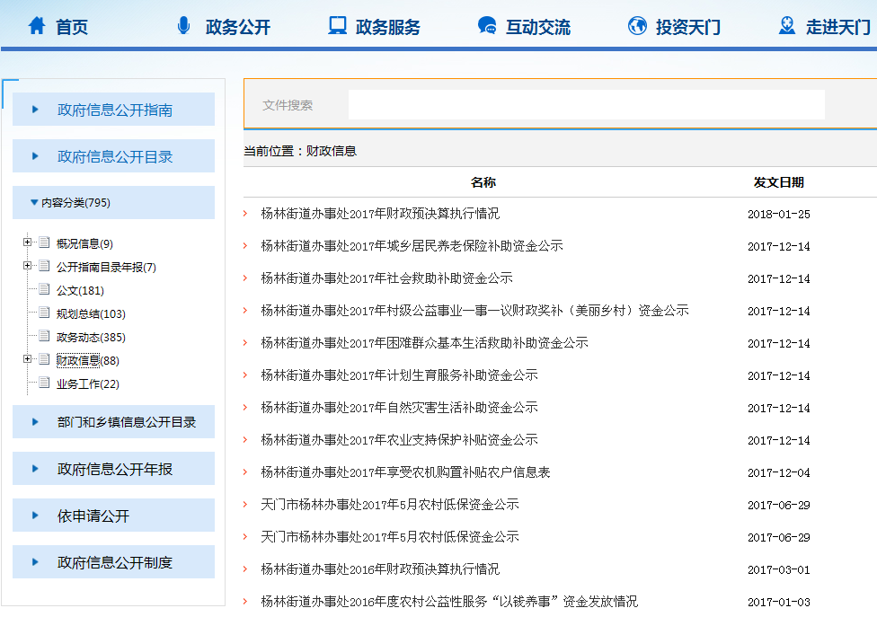 天門市楊林街道辦事處2017年政府信息公開工作年度報告