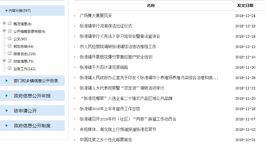 張港鎮(zhèn)2018年政府信息公開工作年度報告