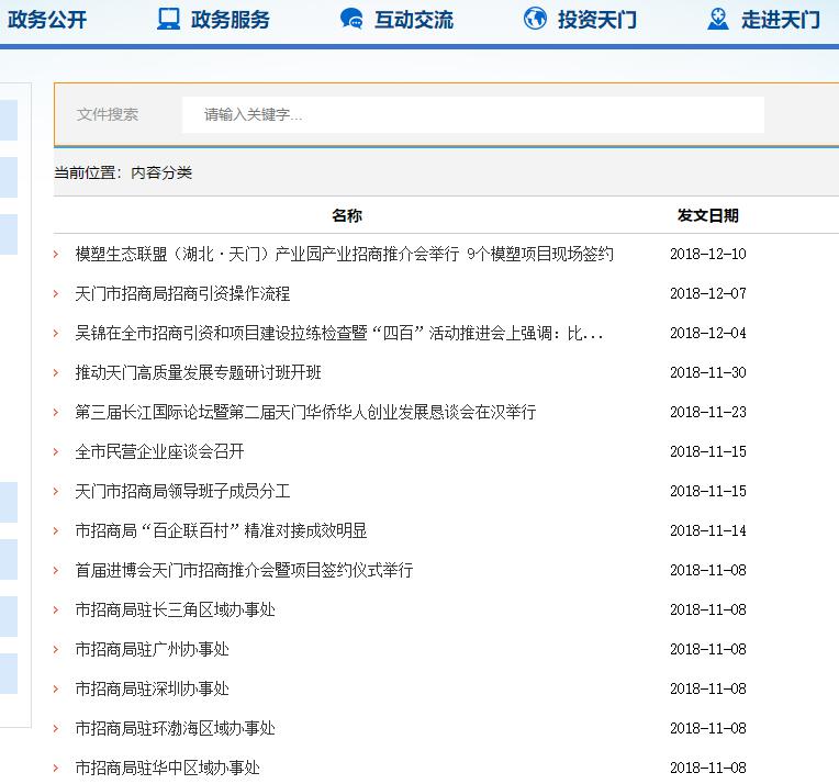 2018年1-12月,我局共主動向社會公開發布政務信息227條。通過互聯網主動公開,通過招商局門戶網站大力宣傳我市招商引資政策、環境、平臺以及其他比較優勢,招商網站成為我市又一有效的招商平臺。按照市委宣傳部要求,我局及時開通了“天門招商” 微信公眾號,進駐了“云上天門”平臺,堅持每周更新1-2篇文章。