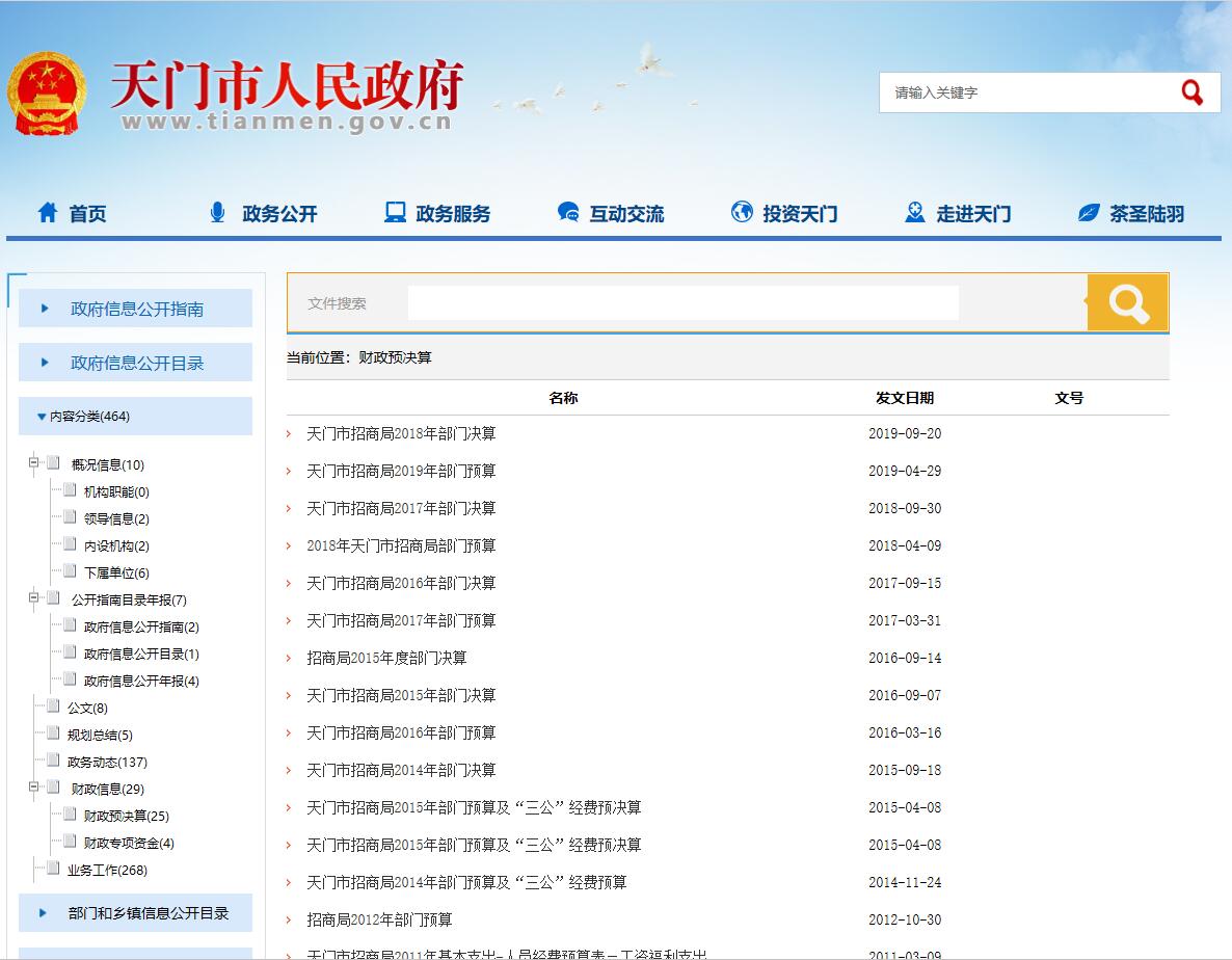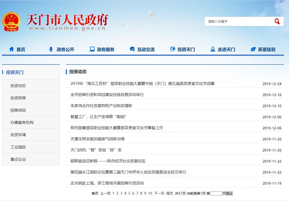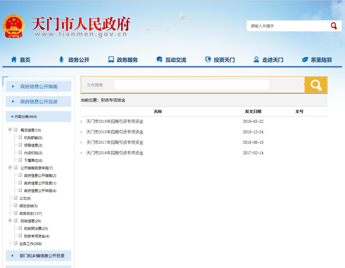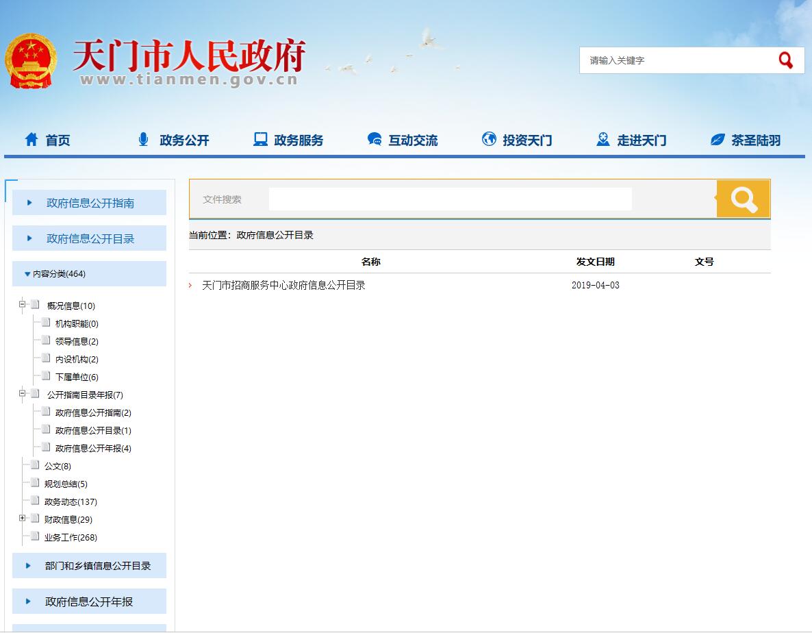 天門市招商服務中心2019年度政府信息公開工作年度報告