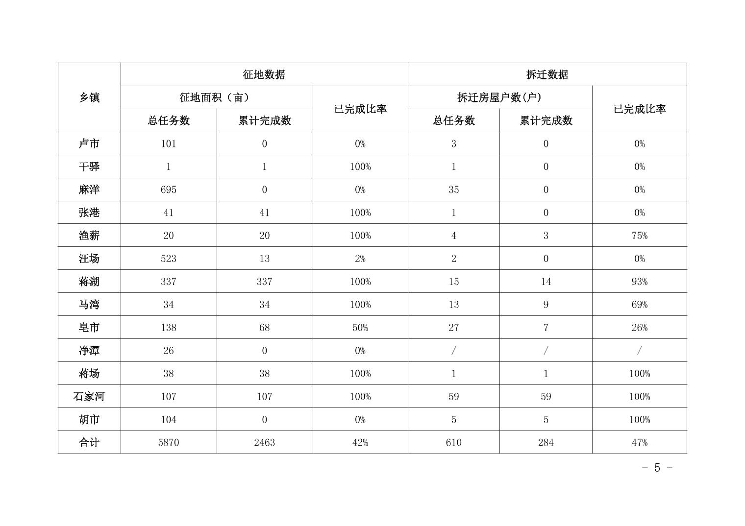 關于天門市2023年上半年各鄉鎮重點建設項目征地拆遷任務完成情況的通報